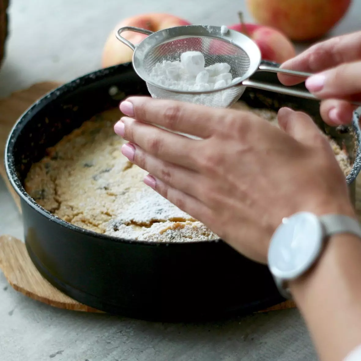 Z doświadczenia wiem, że foremka tego ciasta znika po kilku godzinach. W szczególności jeżeli odwiedzają nas znajomi albo rodzina. Po kawałek jabłecznika z ochotą sięgają też dzieci. Do dzieła! I wiecie do? Do tego jabłecznika nie dodajemy w ogóle mąki :)
