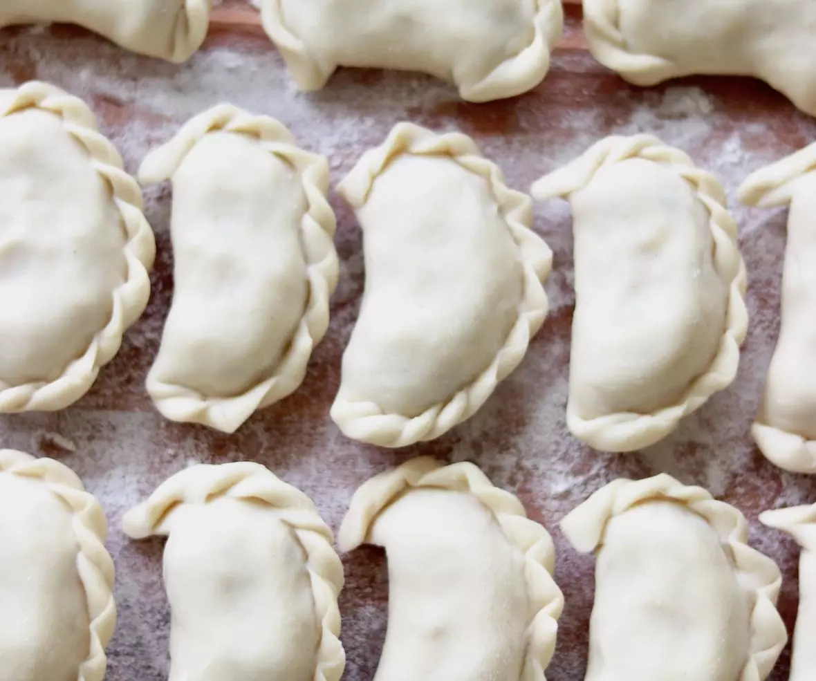 Aby pierogi z kapustą i grzybami miały ładny kształt i nie rozpadały się w trakcie gotowania można na brzegach zrobić tzw. falbankę.