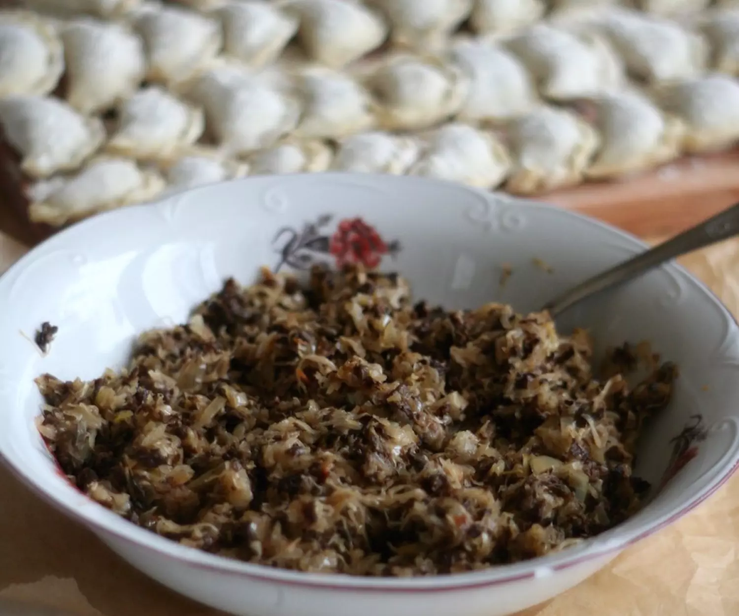 Aby pierogi z kapustą i grzybami były naprawdę smaczne, to trzeba trochę poświęcić czasu na odpowiednie przygotowanie nadzienia. Suszone grzyby należy namoczyć, później je podgotować. Kapustę kiszoną gotujemy przez ok. 30 minut. I w końcu wszystko, razem z cebulką podduszamy na patelni przez kolejne 30 minut. Nadzienie doprawiamy, studzimy i dopiero wtedy zaczynamy lepić pierogi.