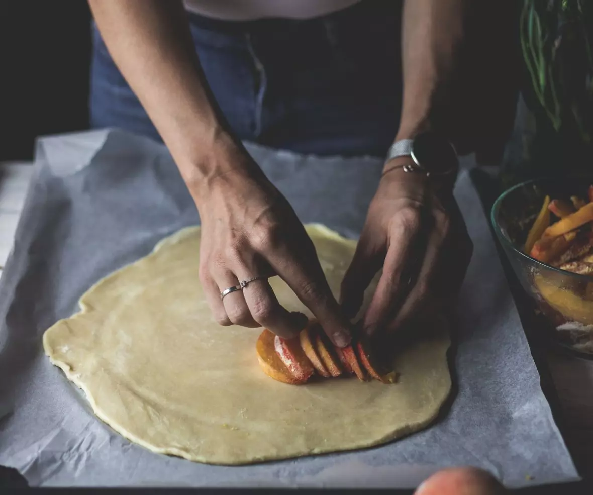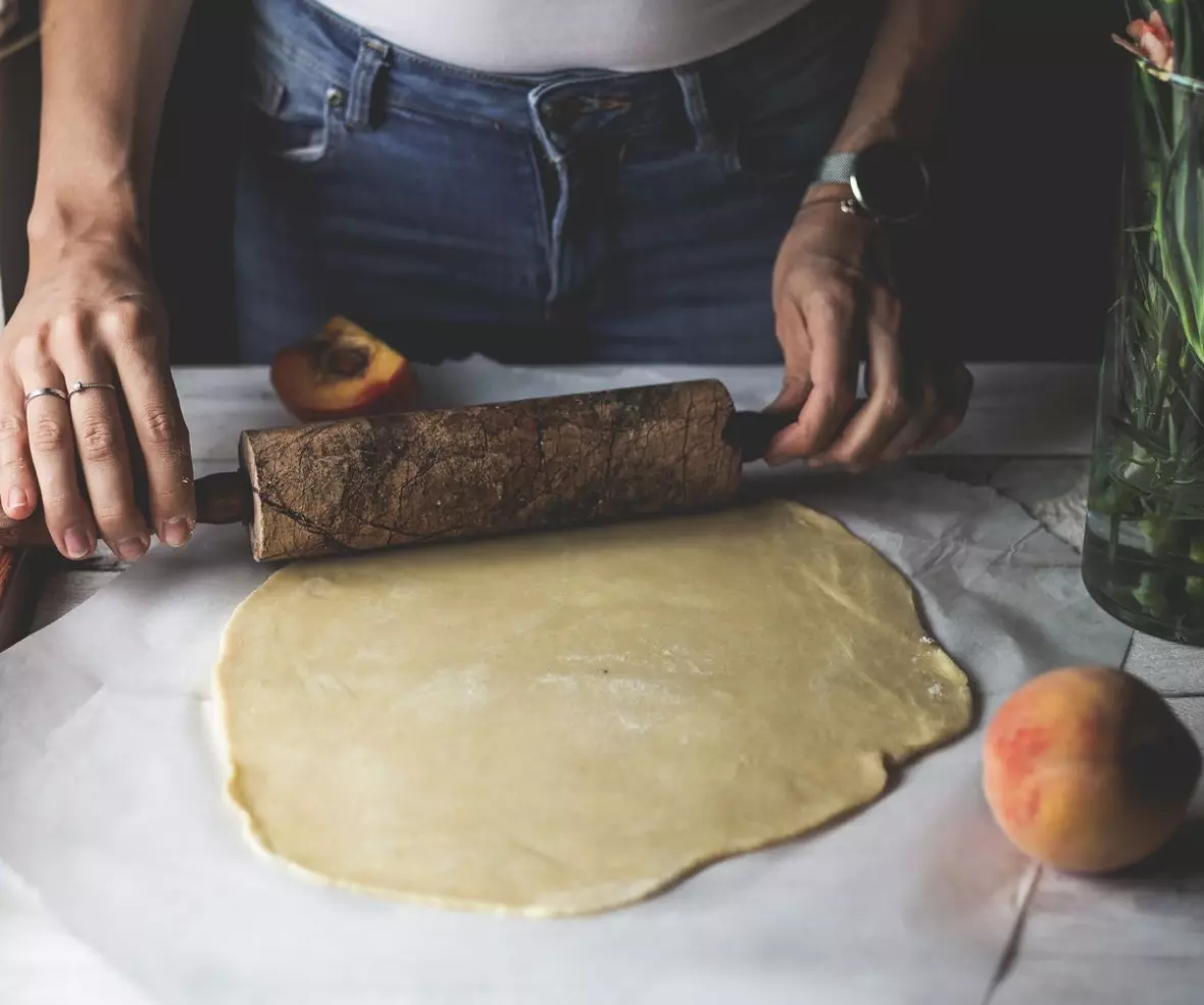 Do przygotowania ciasta potrzebujesz zaledwie kilka składników: masło, mąka i odrobina soku z cytryny albo octu jabłkowego. Ważne jest to aby masło było naprawdę zimne! Ciasto możesz przygotować za pomocą malaksera lub ręcznie, jak wolisz. Dodaj też kwaśny składnik: kilka kropel soku z cytryny czy ocet jabłkowy, to zapewni idealną kruchość. Po uformowaniu zgrabnej kulki owiń ciasto w folię i włóż do lodówki na minimum 30 minut.