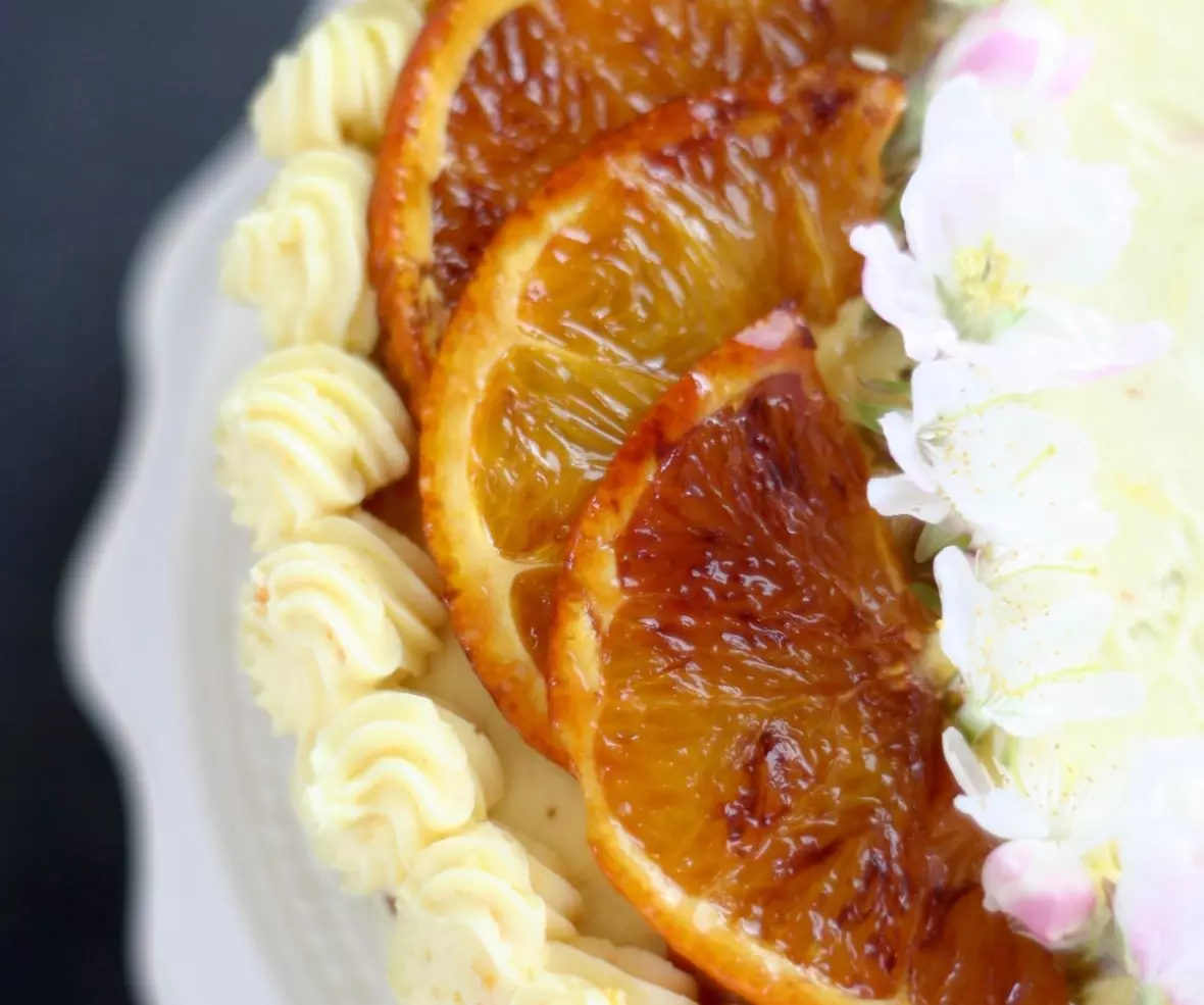 Zależało mi na tym, żeby przemycić jakiś amerykański akcent, a do tego chciałam, żeby tegoroczny tort urodzinowy był pomarańczowy (jest to ulubiony smak Bartka). Z pomocą przyszła mi amerykańska książka kucharska z recepturami z 1896 roku, w której czarno na białym widniał przepis na biszkoptowy tort pomarańczowy. Mało tego! Przepis na biszkopt był zupełnie inny niż te, które do tej pory znałam. Przede wszystkim według amerykańskiej receptury przygotowanie idealnego biszkoptu jest banalnie proste i na 100 procent zawsze się udaje. Wypróbowałam - i faktycznie jest to najprostszy przepis na biszkopt :) W dodatku wychodzi on przyjemnie wilgotny i ma tą charakterystyczną strukturę "gąbki", przez co doskonale się go nasącza i przekłada kremami. Tort pomarańczowy jest przełożony w sumie dwoma kremami, co na pierwszy rzut oka może wydawać się czasochłonne. Jednak nic bardziej mylnego! Po pierwsze - biszkopt przygotujesz w 40 minut, po drugie - każdy z kremów przyrządzisz w 10 minut. Ogromną zaletą tego przepisu jest właśnie to, że torcik powstaje maksymalnie w 1,5 godziny :) A jak smakuje całość? Bartek stwierdził, że jest to najlepszy tort jaki do tej pory jadł :D Misja urodzinowa na ten rok została spełniona! :)